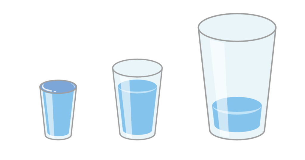 想像してみてください。空から同じ量の雨が降ってきても、受け止めるコップの大きさが違えば、水の溜まり方は全く異なります。